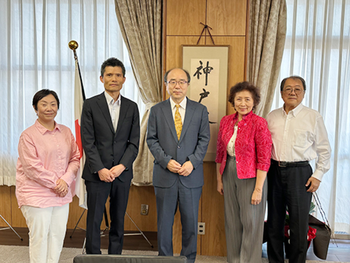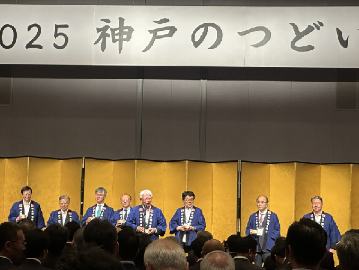 神戸市など主催の「2025神戸のつどい」が8月6日、東京都内のホテルで開かれ、藤澤正人学長をはじめ、木戸良明理事、河端俊典理事、喜多隆理事、辻英之産学連携推進本部副本部長が出席しました。神戸にゆかりのある政界、経済界、官界などの招待者約450人が集った本イベントでは、藤澤学長が、主催者の久元喜造神戸市長、川崎博也神戸商工会議所会頭、菅野吉記神戸市会議長とともに鏡開きをしました。