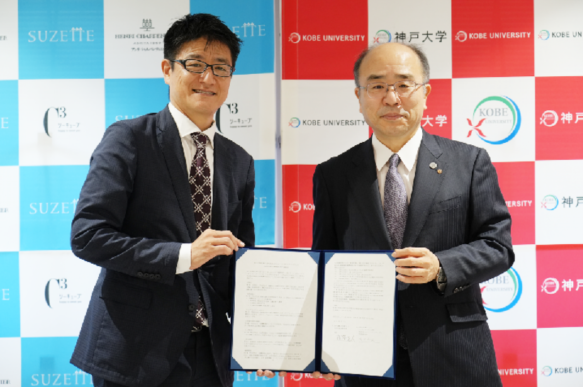神戸大学は8月27日、株式会社シュゼット・ホールディングスと包括的な連携協定を結び、神戸大学産官学連携本部ダイセルOIホールで締結式と記者会見を開きました。神戸大学の包括連携企業は、同社が加わったことで21社になりました。