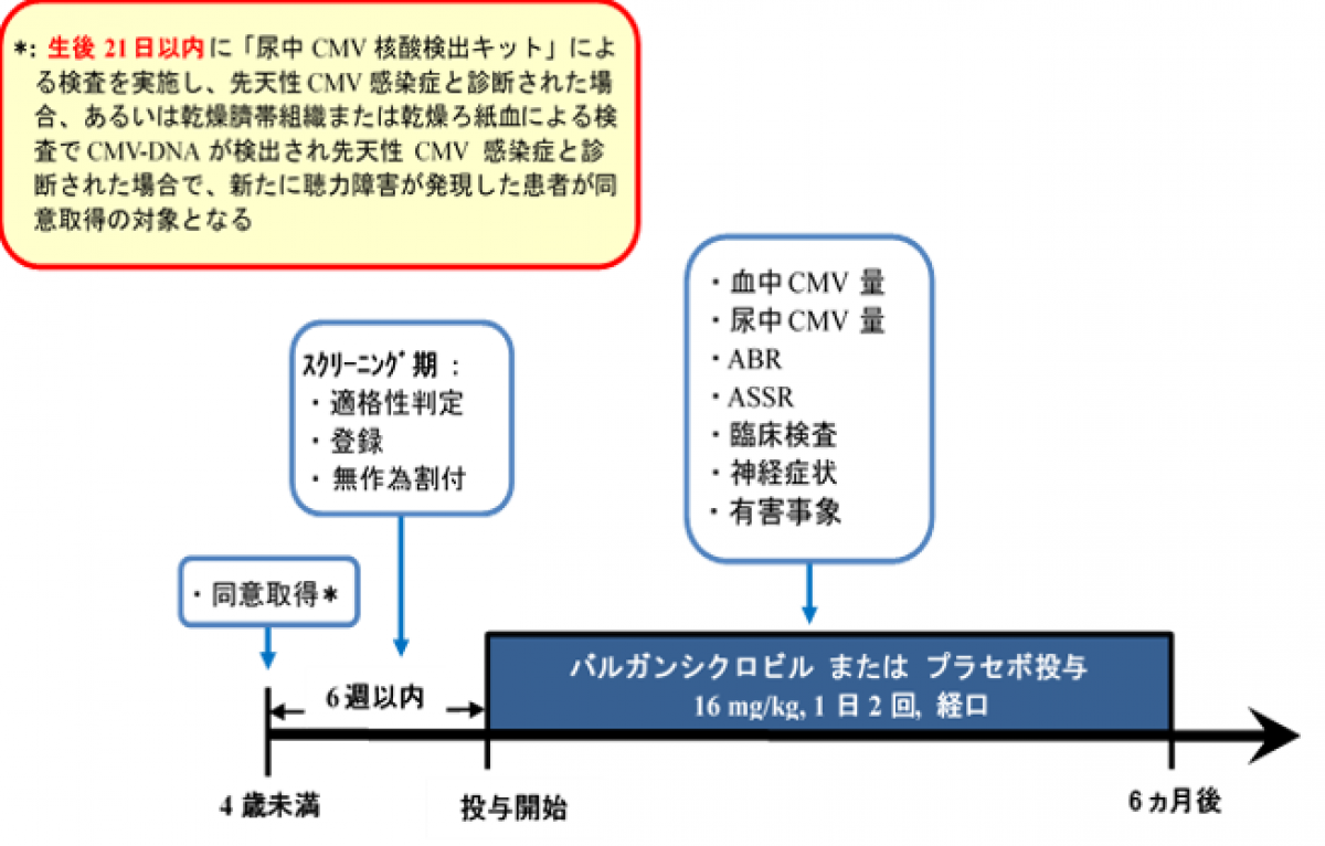 この度、日本大学医学部小児科森岡一朗教授、埼玉県立小児医療センター岡明病院長、神戸大学医学部附属病院小児科野津寛大教授、国立成育医療研究センター守本倫子診療部長らの研究グループは、神戸大学医学部附属病院臨床研究推進センターを治験事務局として、臨床研究・治験推進研究事業・「先天性サイトメガロウイルス(CMV) 感染児の遅発性難聴を対象としたバルガンシクロビル塩酸塩ドライシロップの有効性および安全性を評価する多施設共同プラセボ対照ランダム化並行群間比較試験(VGCV-3)」医師主導治験を開始しました。