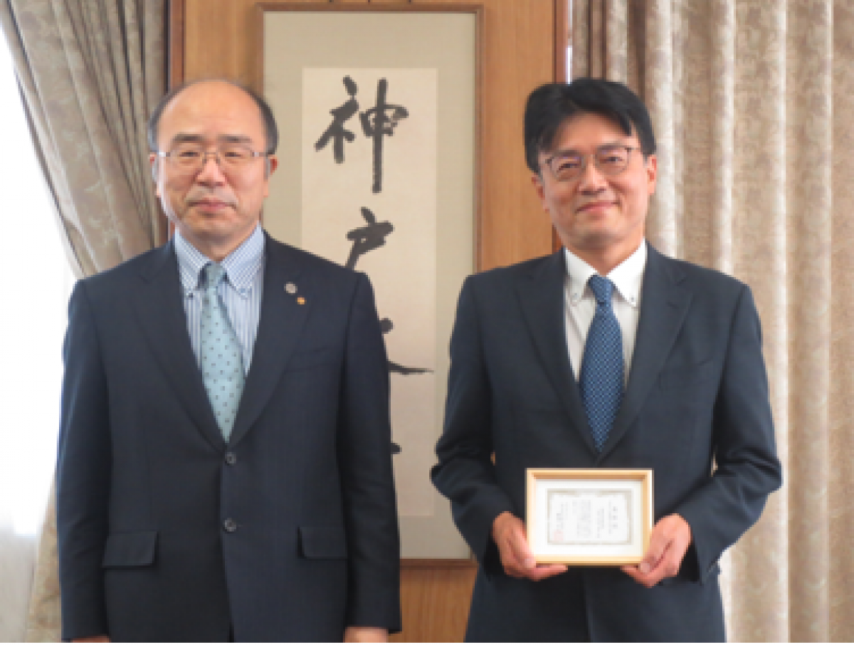 全国労働衛生週間(10月1日~10月7日)のイベントとして、大学院保健学研究科が本年度「神戸大学の安全及び労働衛生に係る表彰」の被表彰団体として選定され、石田達郎大学院保健学研究科長が代表者として藤澤正人学長より表彰状を授与されました。