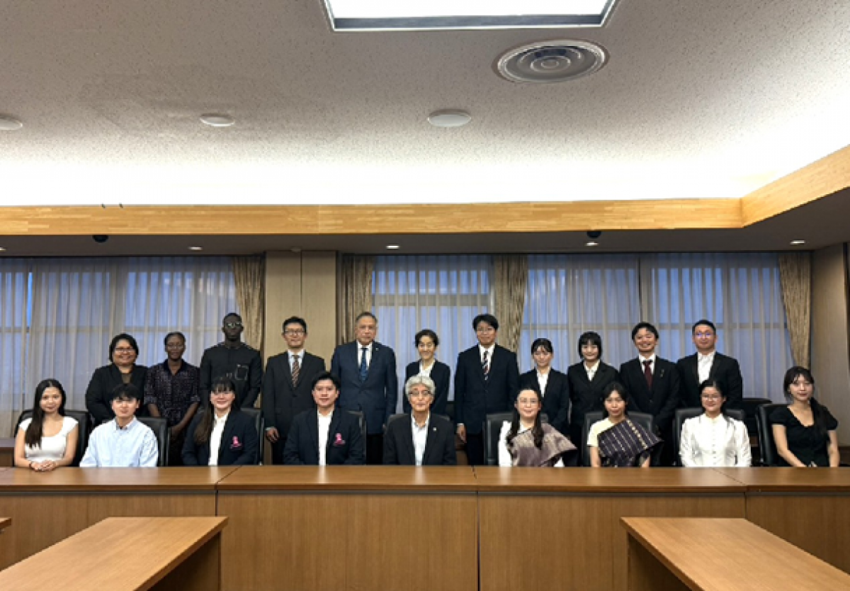 10月10日、神戸大学キャンパスアジア・プラス・プログラムに参加の学生計15名が、事業推進責任者の玉置久理事・国際連携推進機構長を表敬訪問しました。大学院国際協力研究科からプログラム実施委員長の林美香教授、実施副委員長の小川啓一教授、コーディネーターの米沢竜也助教、八木歩特命助教が同席し、以下の学生が参加しました。