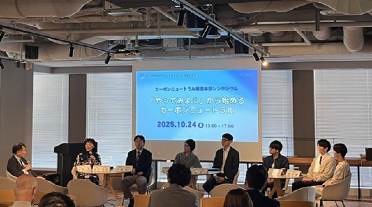 10月24日に、神戸三宮阪急ビル アンカー神戸にて、カーボンニュートラル推進本部シンポジウムを対面とオンラインを併用した形式で開催しました。会場とオンライン合わせて72名の皆さまに参加いただきました。