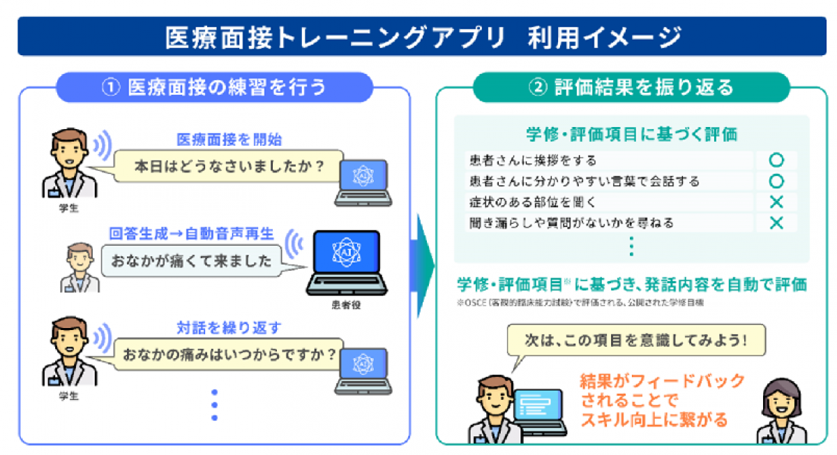 神戸大学とフューチャー株式会社は、臨床教育の質向上と効率化を目的に、医学生向けにAIを活用した医療面接トレーニングアプリ(問診用対話型AI)を開発しました。第一弾として神戸大学において行った有効検証を経て、新たに2025年7月から2026年2月にかけて、全国の医学生を対象に有効検証を拡大します。