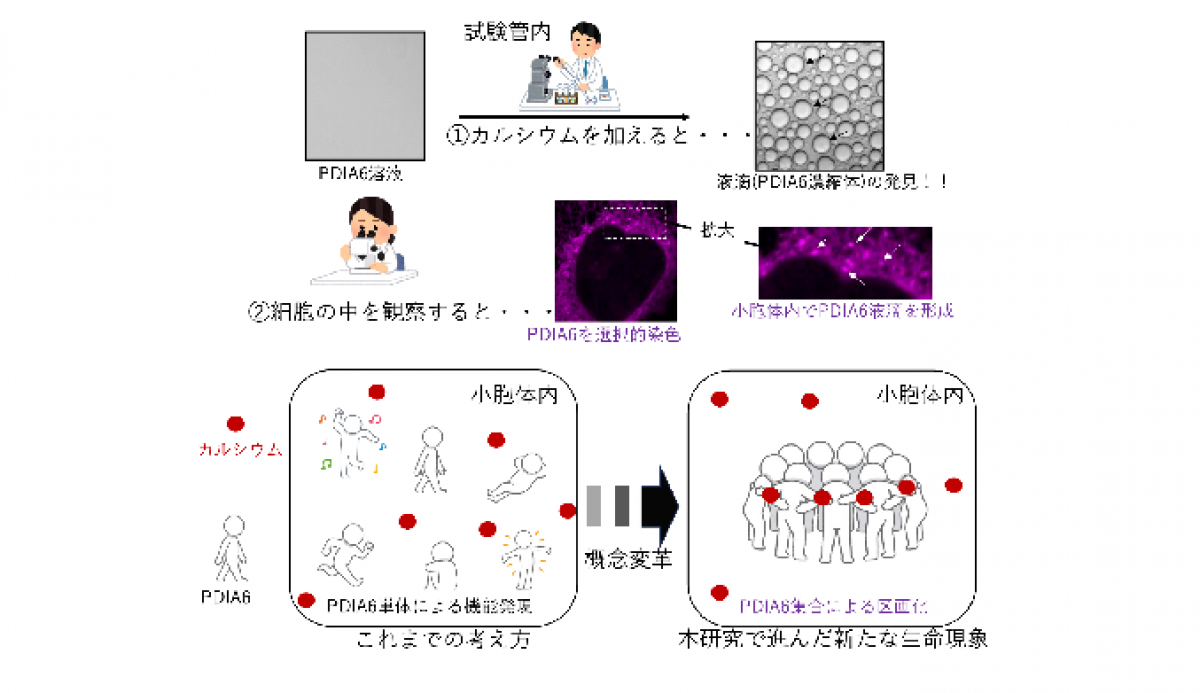 細胞内におけるタンパク質品質管理の破綻は多くの疾患を引き起こします。東北大学学際科学フロンティア研究所、大学院生命科学研究科(兼務)の奥村正樹准教授(国際卓越研究者 :ディスティングイッシュトアソシエイトプロフェッサー)らの研究グループは、日韓英の17研究グループによる国際共同研究により、小胞体内に局在しカルシウム依存的に相分離するPDIA6が、その区画内での未成熟インスリンの凝集形成を抑える役割を果たしていることを見いだしました。この発見は、これまで一様と考えられてきた小胞体内が区画化されているという概念変革を与えるものです。
