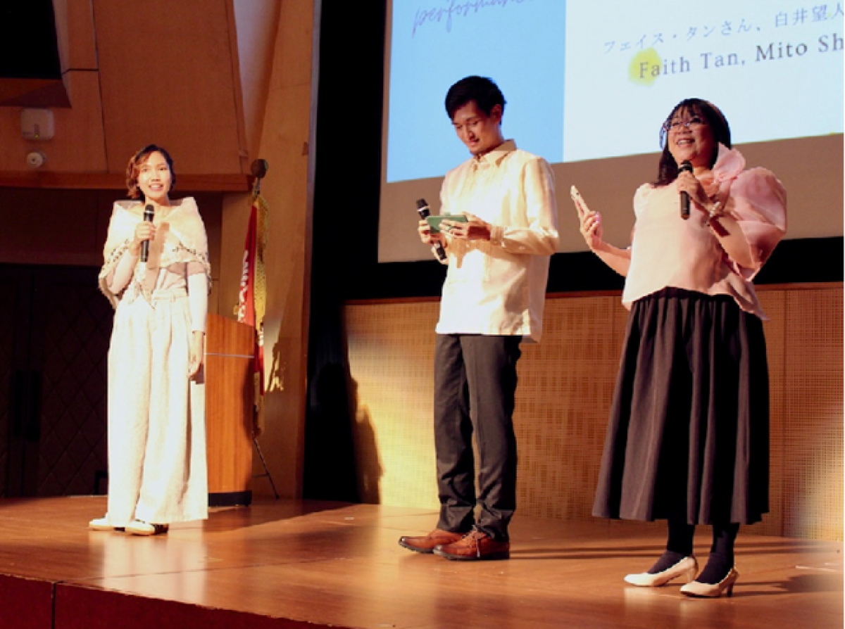 10月25日、第22回留学生ホームカミングデイを六甲ホールにて開催しました。当日は、修了生のヘリニャン・アンドレイ・マリャンさん(人文学研究科2022年修了)と、在学中の留学生バルジンニャム・ハジドツェツェクさん(経営学部)が司会を務め、日英バイリンガルの司会で進行されました。