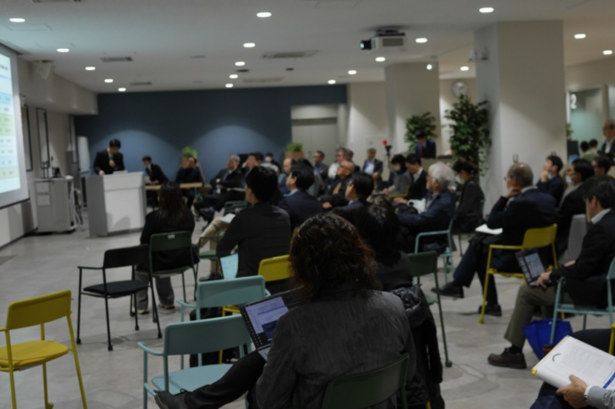 会場には、藤澤学長、喜多理事(研究担当)、河端理事(社会共創・イノベーション担当)に加え、学内教職員や企業関係者を中心とした学外者をあわせて計80名が来場しました。